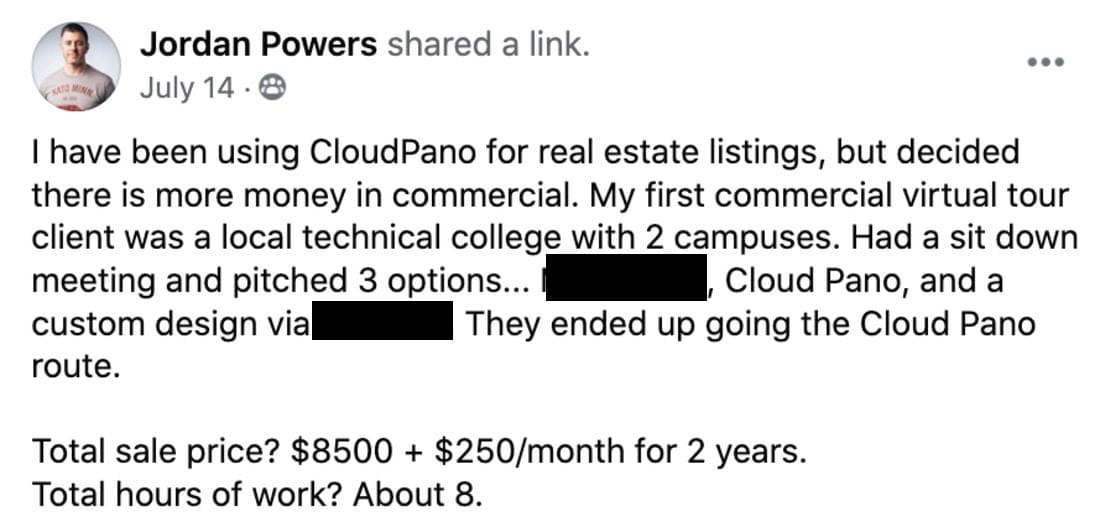 Yes! We give you complete workflows to create a 360 virtual tour (even with zero experience). Also there is more included than just the virtual tour fulfillment. You also have access to digital marketing funnels and resources to help your clients succeed beyond the digital media level.